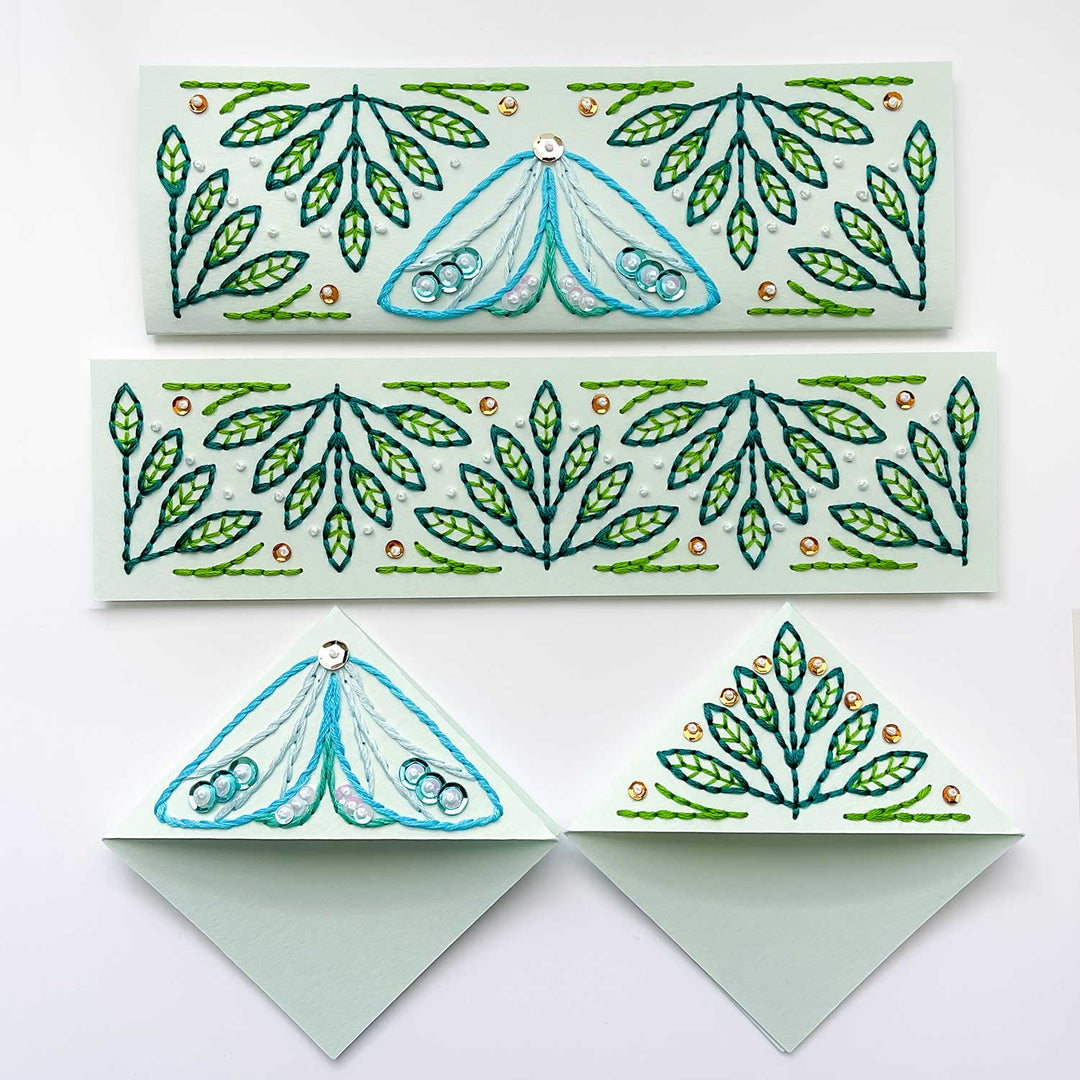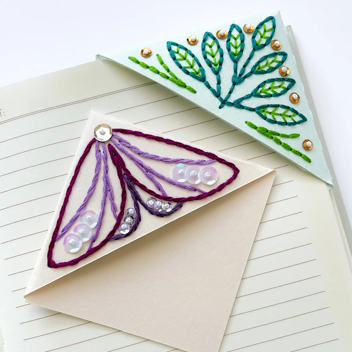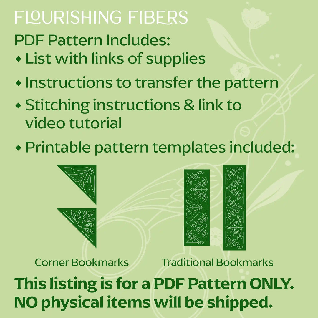 Keep your place in style with the 'Flutter & Flora' bookmark patterns! This paper embroidery download includes four bookmark designs: two corner bookmarks and two classic rectangular bookmarks, all featuring delightful moth and plant motifs.