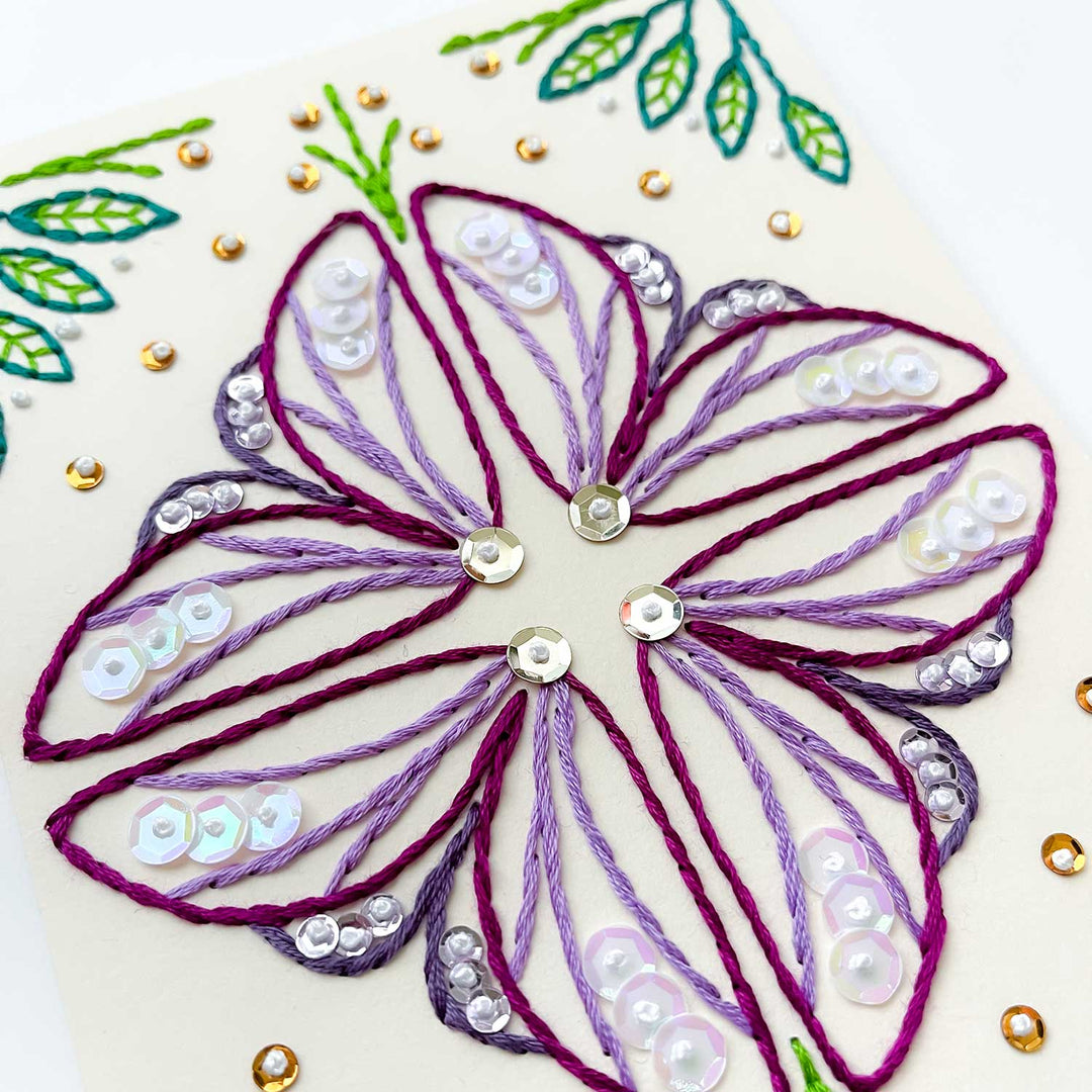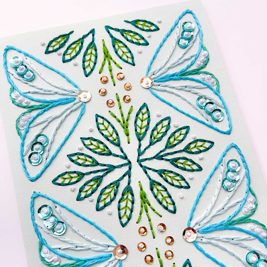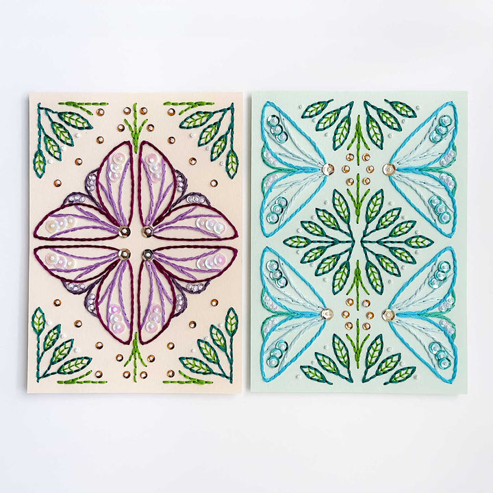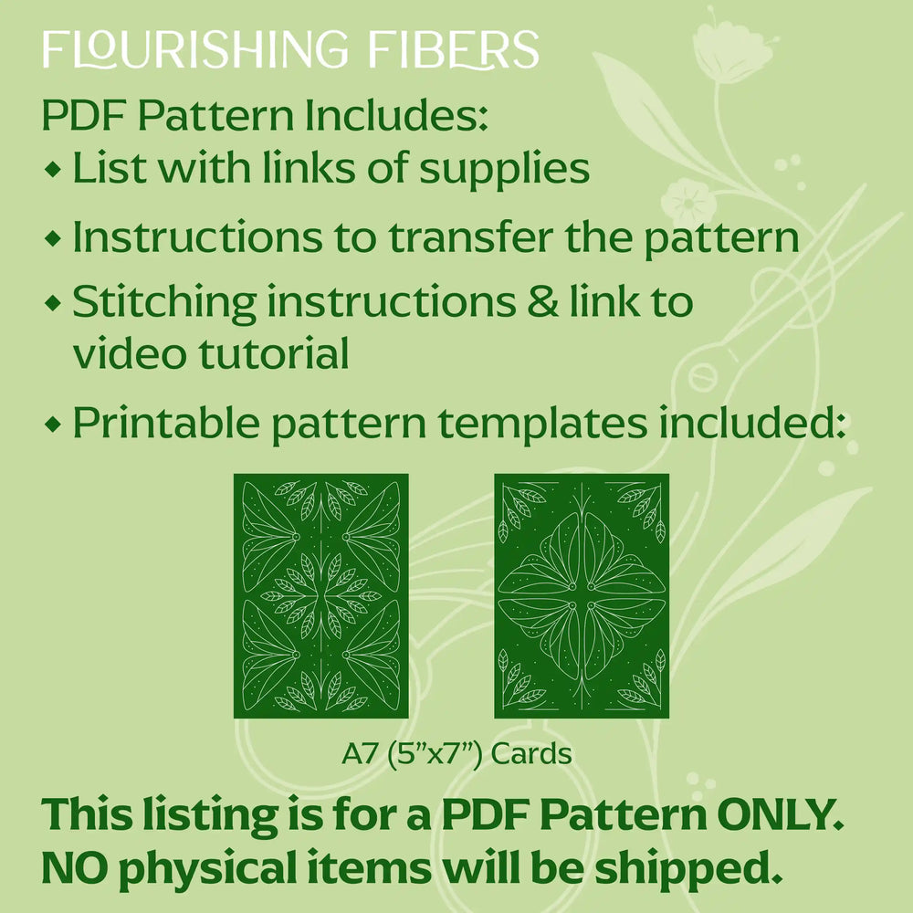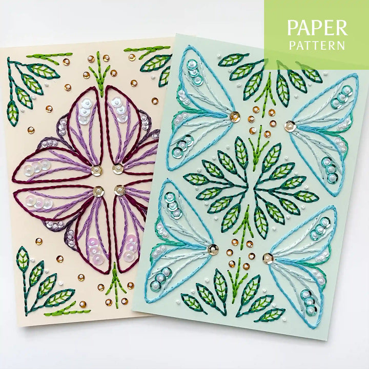 Elevate your handmade cards with the 'Flutter & Flora'  card patterns! This paper embroidery download offers two distinct moth and plant motif designs, perfect for adding a unique, embroidered touch to your greetings.