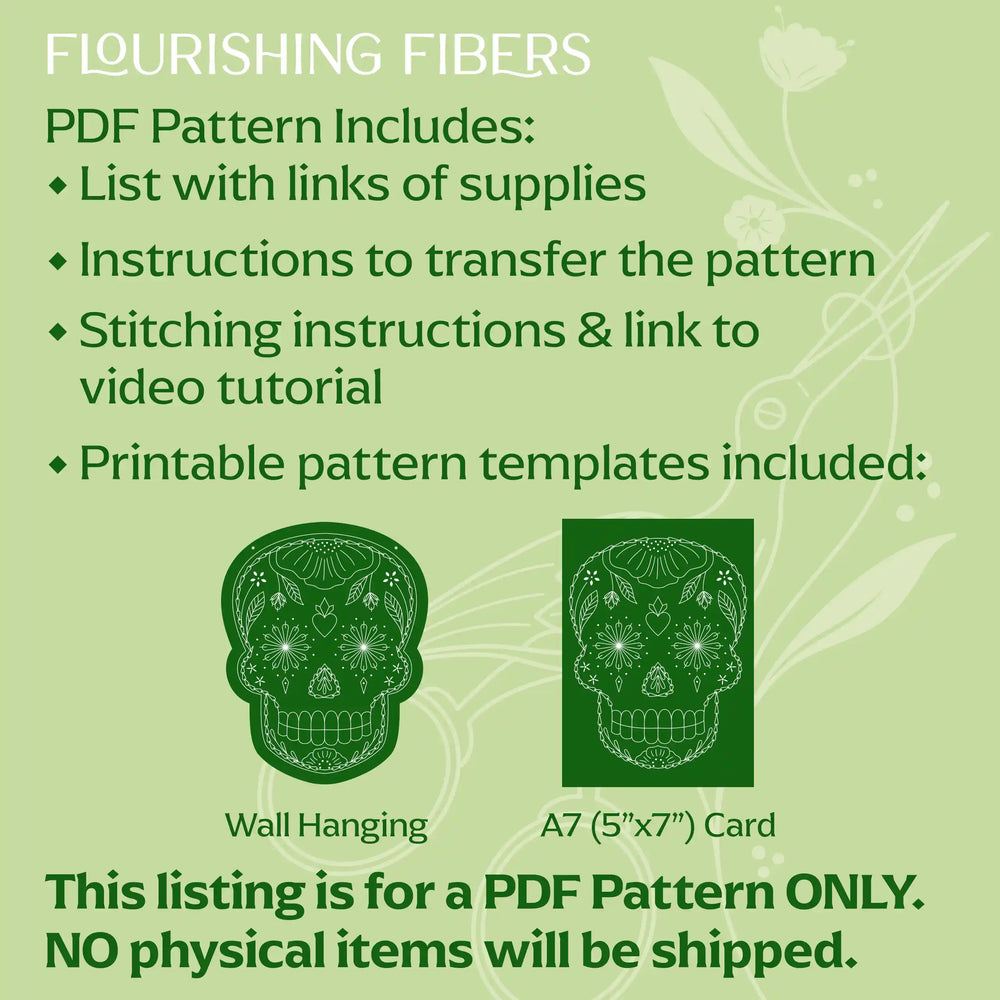Embrace the beauty of Dia de Muertos any day with this vibrant sugar skull embroidery pattern! Designed specifically for paper or wood embroidery, this festive design features colorful floral elements. Perfect for craft lovers who appreciate folk culture and want to add a unique touch to their home decor.