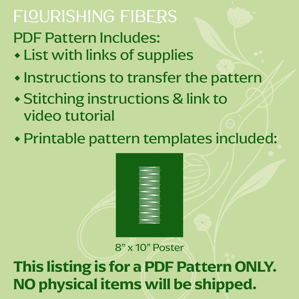 Create modern, bold art with the Zig Zag digital paper embroidery pattern. This beginner-friendly design uses simple straight stitches. Includes two color options for light or dark paper. Customize with your favorite colors for a unique piece..