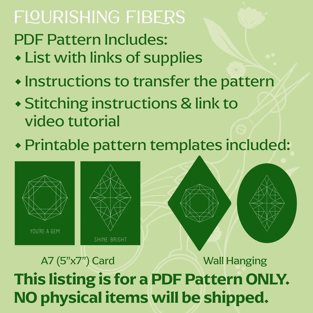 Unleash your inner jeweler with our "Gems" patterns! This collection of stunning geometric designs, inspired by precious gems, is perfect for both wood and paper embroidery.