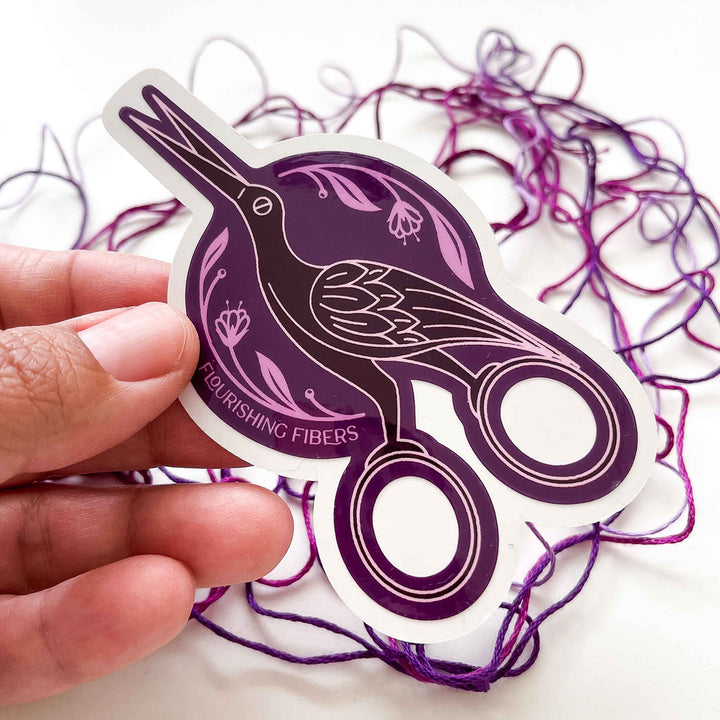 Traditional stork embroidery scissors inspire this easy-peel, matte vinyl sticker. The sticker is perfect for showing your love for embroidery on any surface, such as a laptop, water bottle, or notebook. Order your vinyl sticker today!