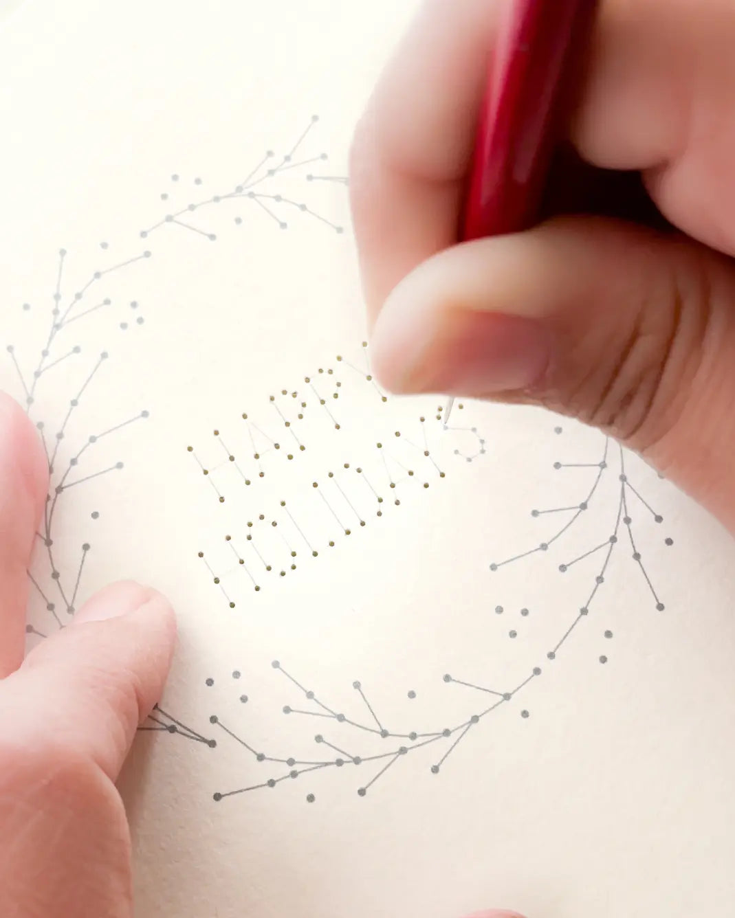 No, paper goods are blank or pre-printed with a pattern design that you can pierce using an awl.