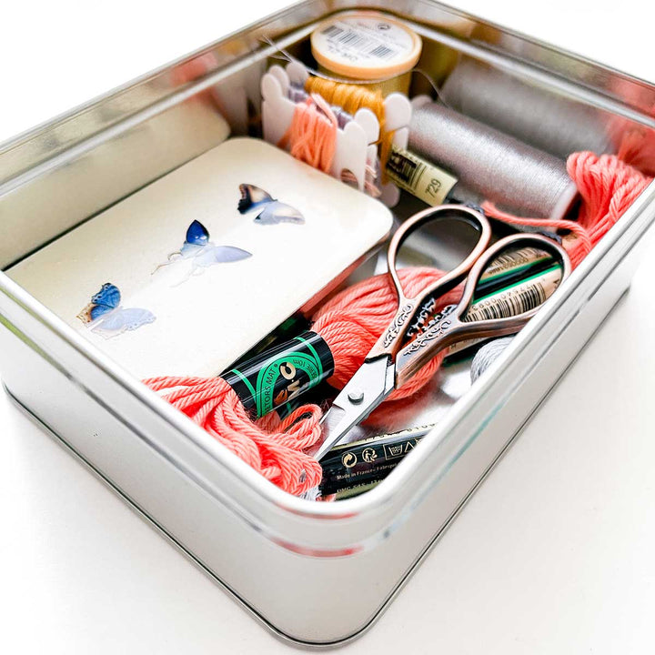 There are no cookies in this tin box ;) Now, you can store all your sewing and embroidery notions in a stylish, one-of-a-kind container.