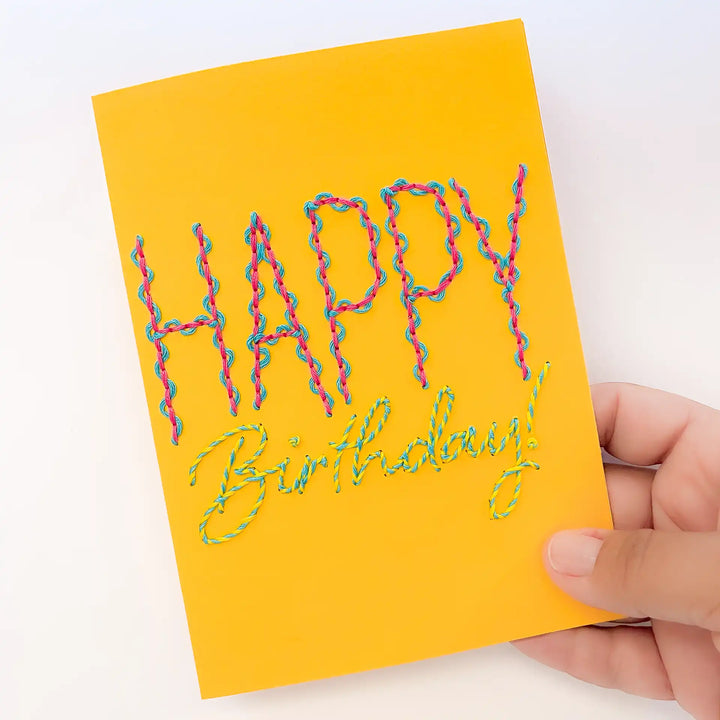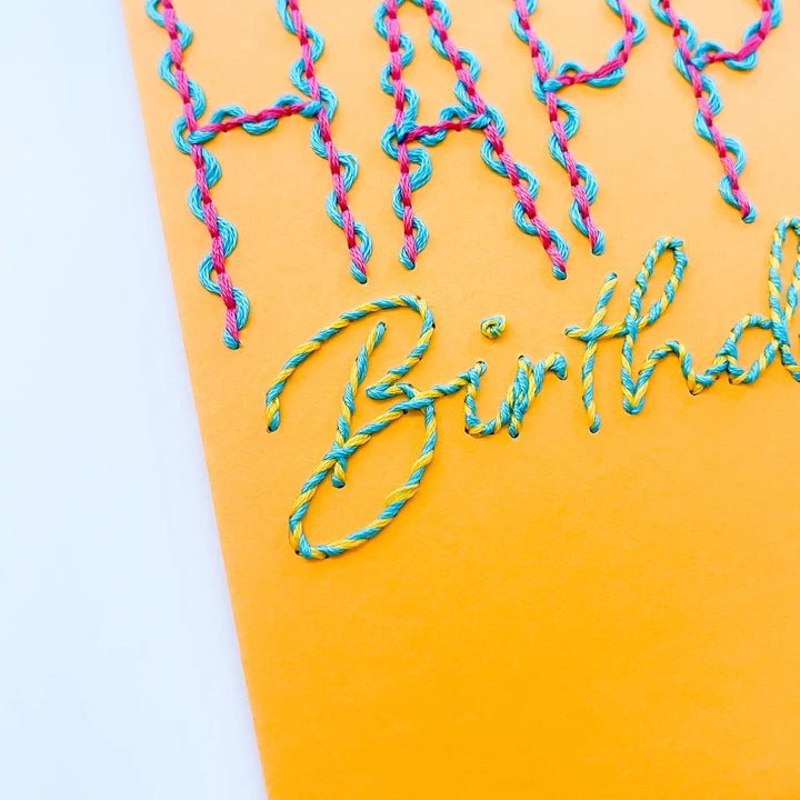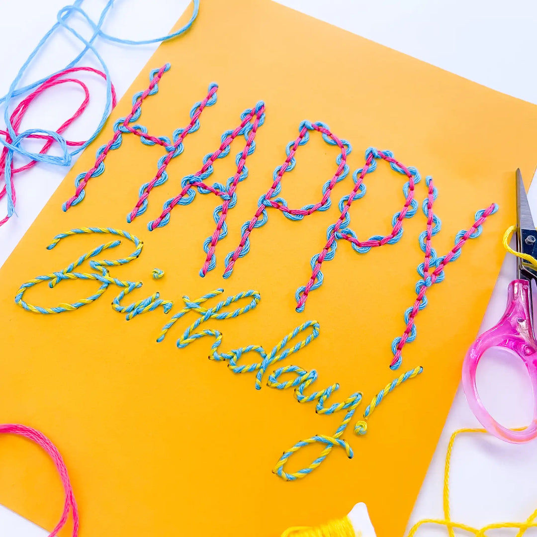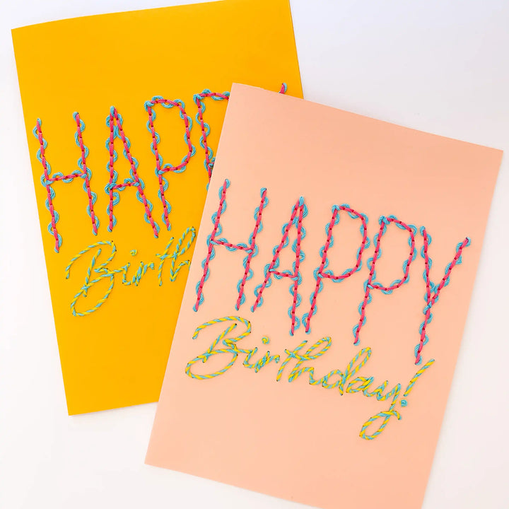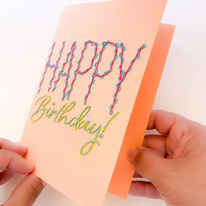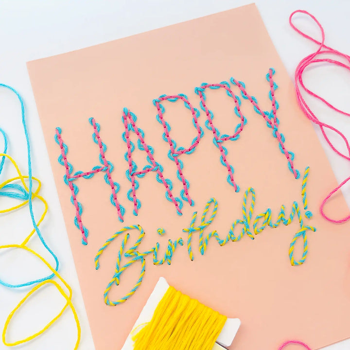 Experience the joy of paper embroidery without the prep work with our pre-printed Squiggles & Swirls Birthday Card!