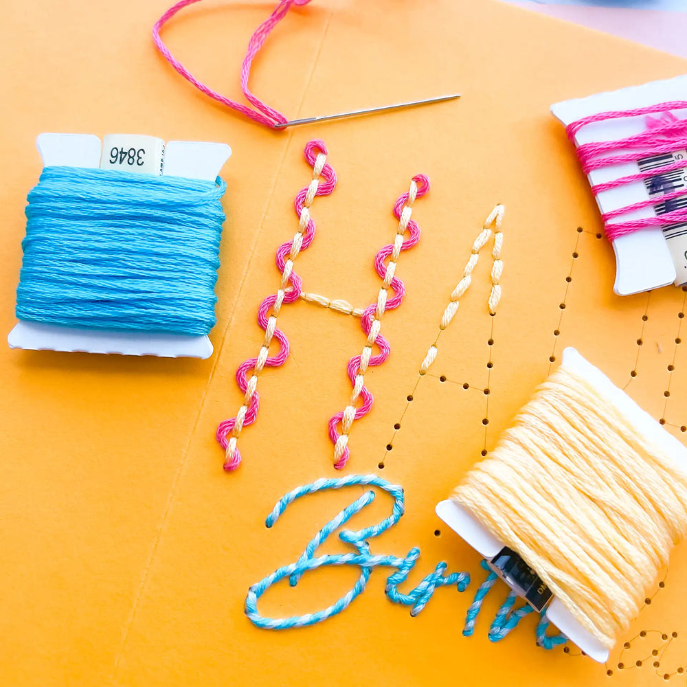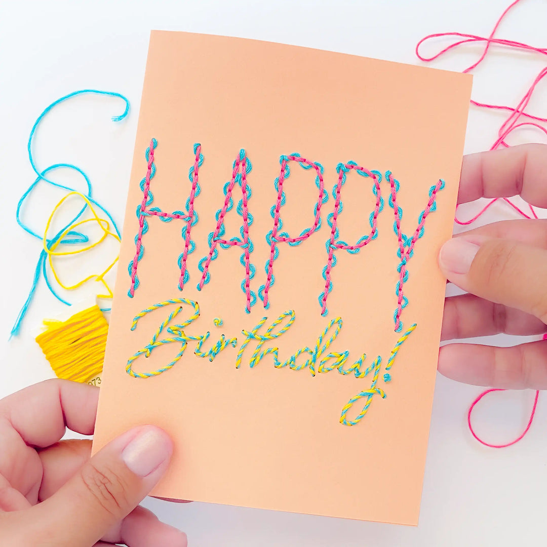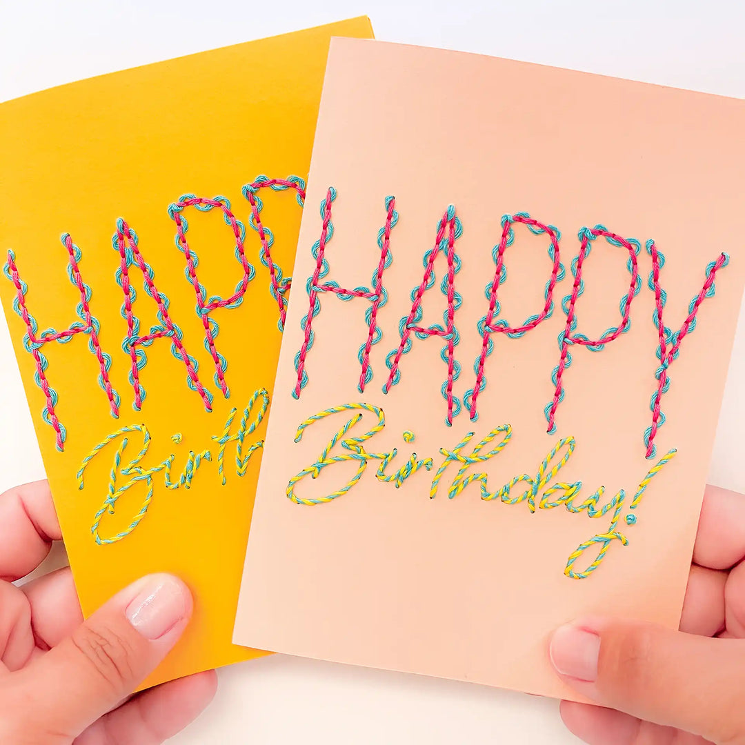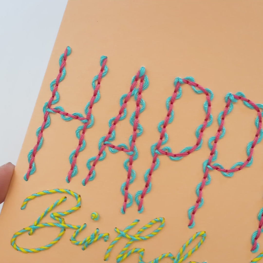 Experience the joy of paper embroidery without the prep work with our pre-printed Squiggles & Swirls Birthday Card!
