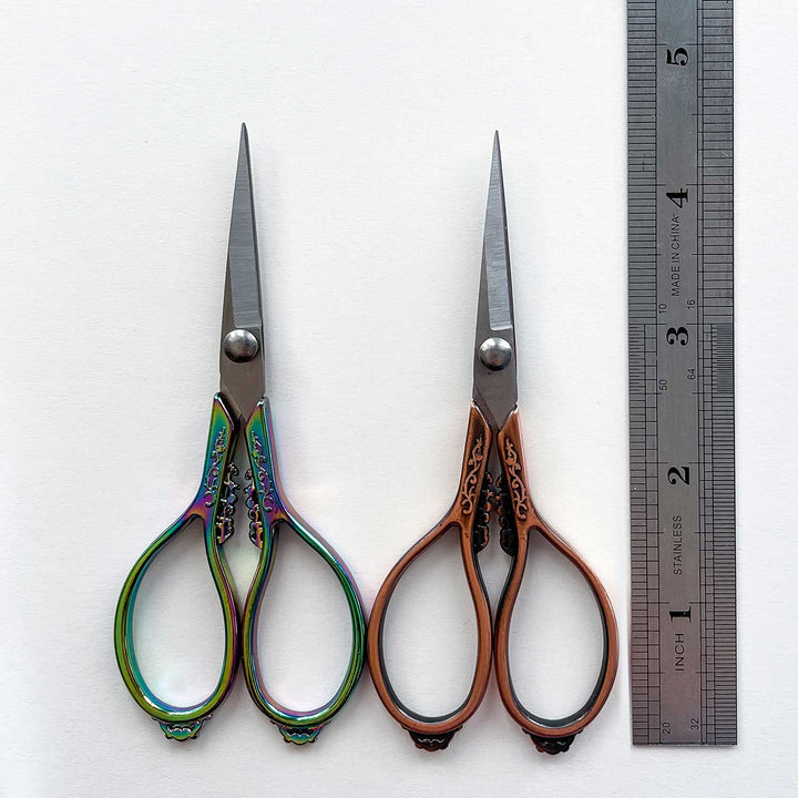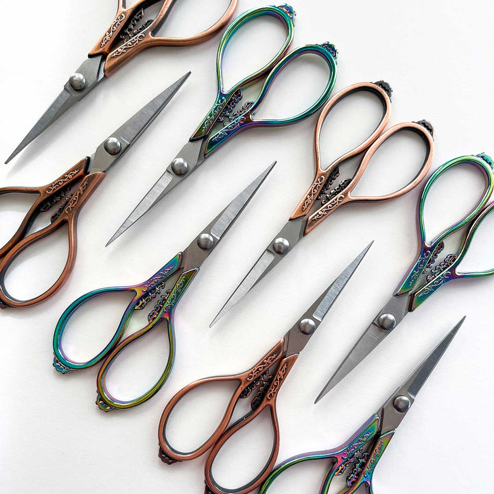 These ultra-sharp and vintage-inspired scissors will be the perfect addition to your scissor collection! Adore embroidery scissors are perfect for embroidery, sewing, quilting, ribbon cutting, and other crafting needs. Available in 2 finishes, Copper and Multi-Color.