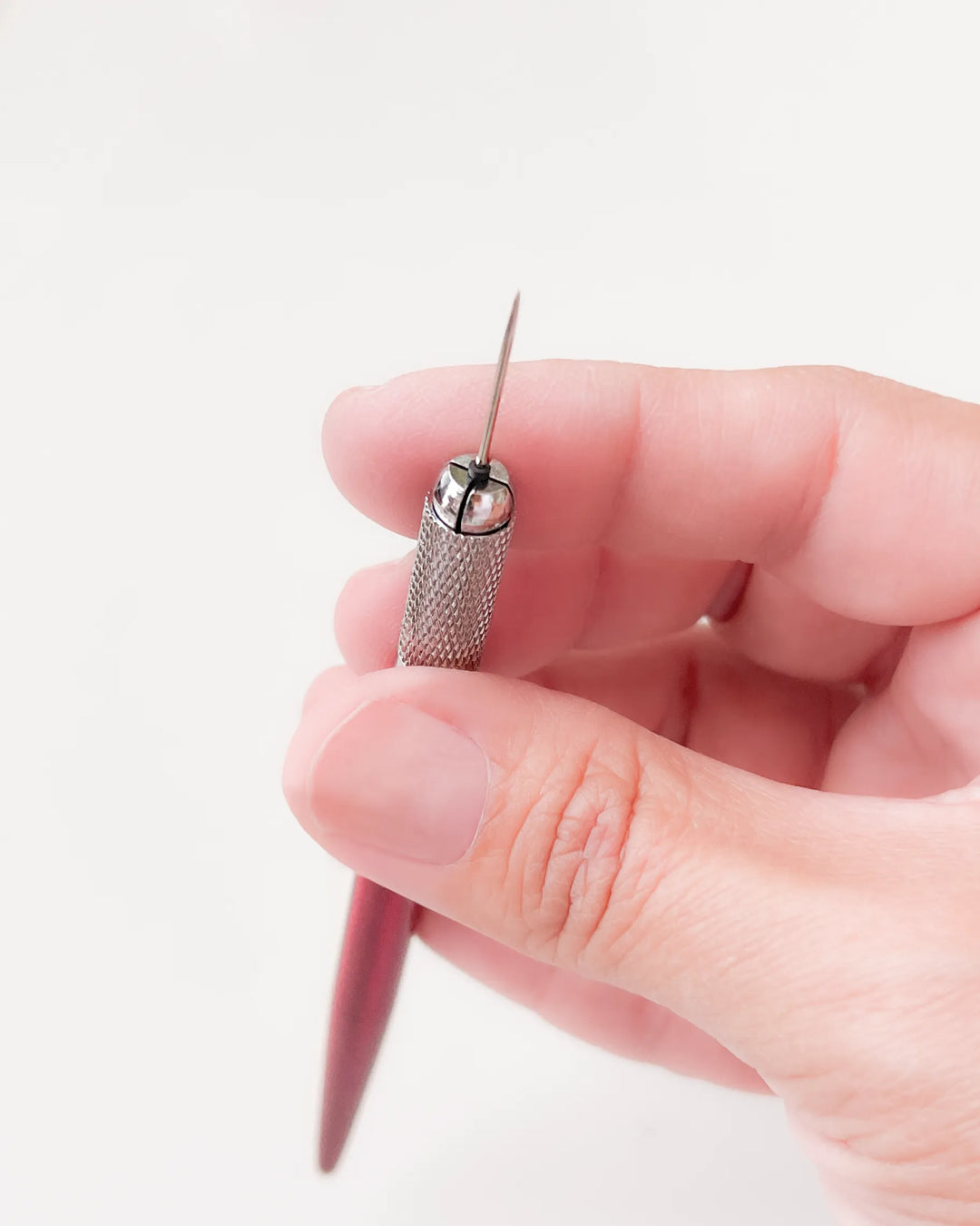 Convenient storage: The awl holder doubles as a storage case for the needles.