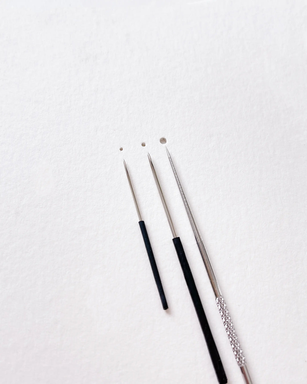 Interchangeable design: Switch between ultra-fine, fine, and heavy needles to accommodate different thread thicknesses and paper types.